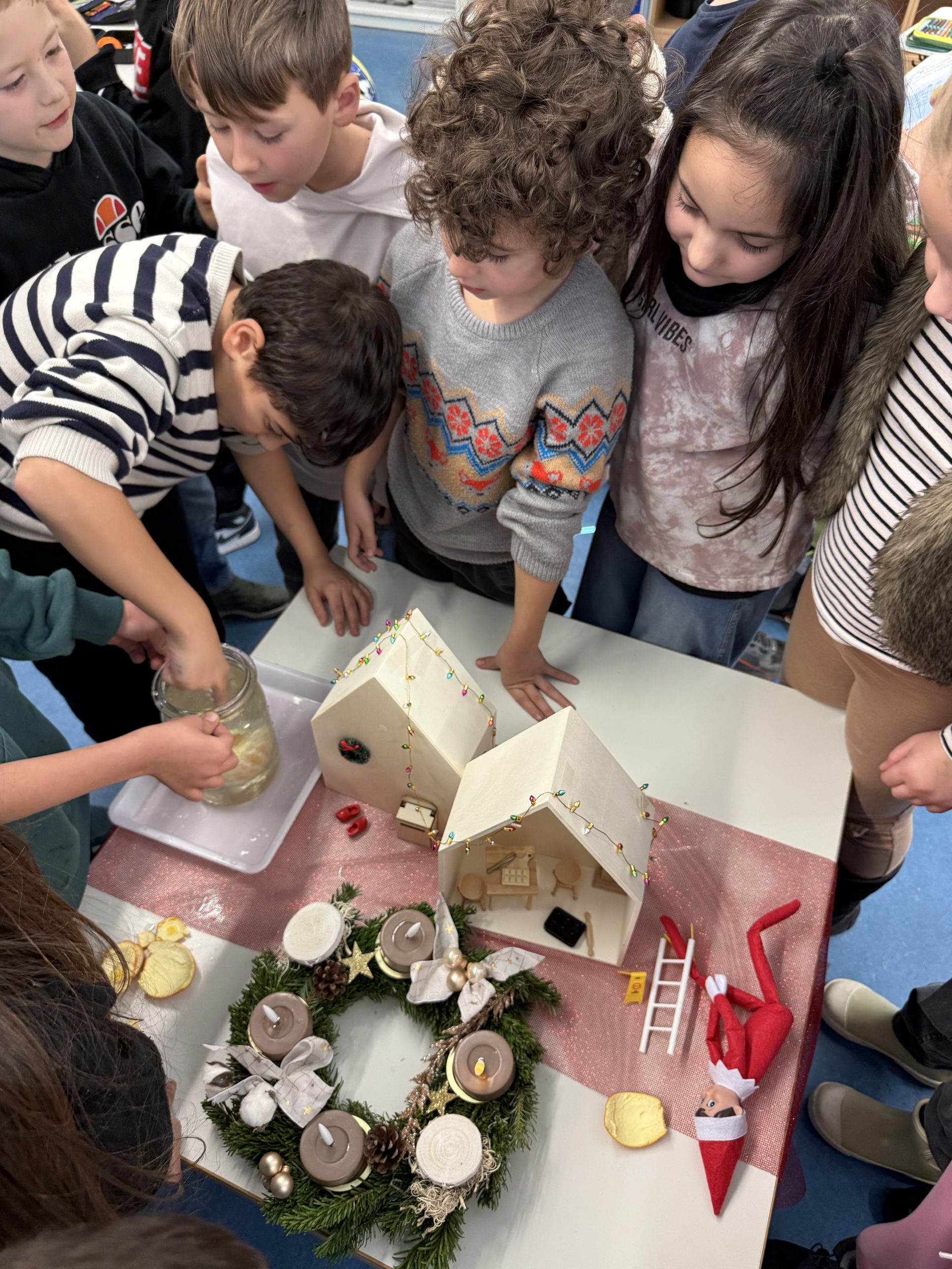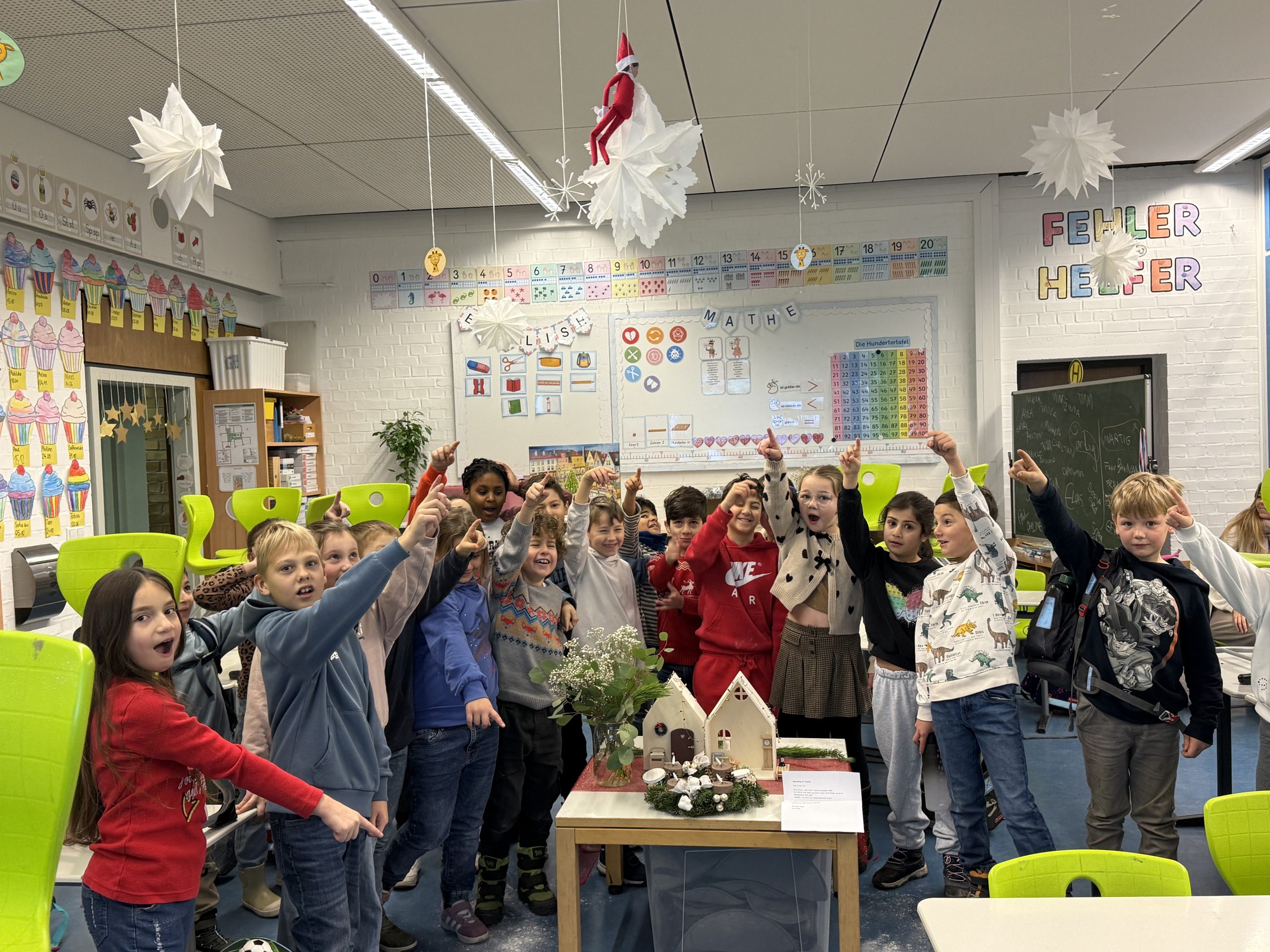 In der Adventszeit bekam die Klasse 2d ganz besonderen Besuch: Der Weihnachtswichtel Buddy zog heimlich ins Klassenzimmer ein. Schon am ersten Morgen staunten die Kinder, als sie ihn entdeckten und seitdem sorgt er täglich für Überraschungen.